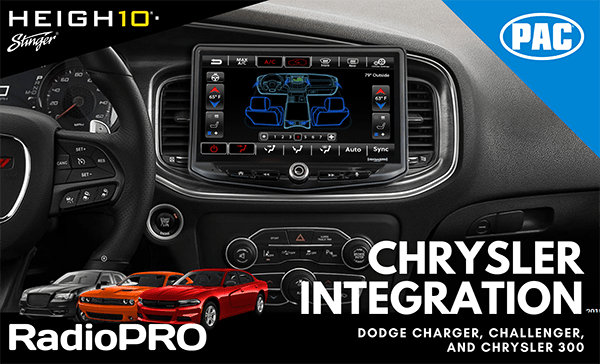 CLEARWATER, FL (04.13.22) – PAC has launched a fully integrated 2015 – 2021 Dodge Charger, Challenger and Chrysler 300 kit for the Stinger HEIGH10 multimedia head unit under its well-known radio integration brand, RadioPRO Advanced.