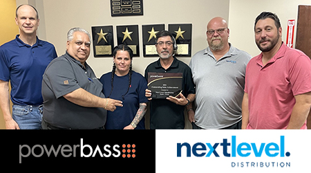 JUNIPER, FL (04.18.22) – Next Level Distribution had a very strong 2021 with the PowerBass. As a result Nelson Pierantoni, TriStar Marketing, recently delivered the Award the award in person at the company’s Juniper FL location.