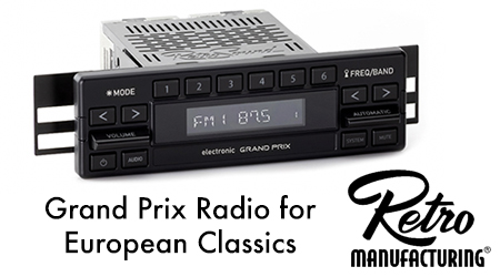 HENDERSON, NV (03.10.23) – The RetroSound Europa is an all-new design by Retro Manufacturing inspired by the sophisticated style found in the 1960s-1970s Mercedes vehicles. The replica knobs, large push-buttons, elegant chrome trim, and pinstriping perfectly complement the interior style of these classic Mercedes vehicles while updating their audio technologies to today’s standards. A new DIN-Kit is included with the Europa Radio Face to provide an easy installation and OEM appearance. The DIN kit also allows the Europa to be installed in any application with a single DIN opening making it a great choice for other European classics from the era that originally had a single DIN radio.