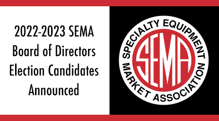 DIAMOND BAR, CA (03.22.22) – The following candidates are vying for a seat on the Specialty Equipment Market Association (SEMA) Board of Directors: