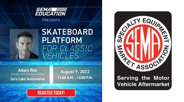 SEMA members are invited to the “Skateboard Platform for Electric Vehicles” webinar on Wednesday, August 9, at 11:00 a.m. PDT to learn about the complete process of an EV platform. Attendees will hear from Adam Roe, founder, CEO and product architect of Zero Labs Automotive, as he teaches the components associated with an electrified vehicle and EV conversion, as well as the component names, integration, hazards and diagnosis that are present when converting a gas-powered vehicle to electric.