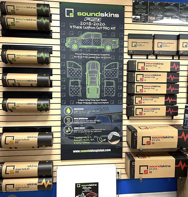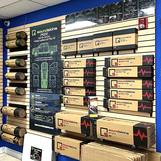 SACRAMENTO, CA (12.15.22) – An in-store SoundSkins wall display was recently completed at the Rolling Soundz location in Sacramento. Store owner Nas Khan related “No doubt, our new display in this location puts the sound dampening category and SoundSkins brand in front of every customer that walks into our store.”